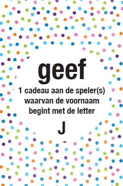 Let op: Iedereen moet de 1e ronde met minimaal 1 cadeau eindigen. Heb je geen 1 of 6 gegooid? Dan is het laatste cadeau voor jou.