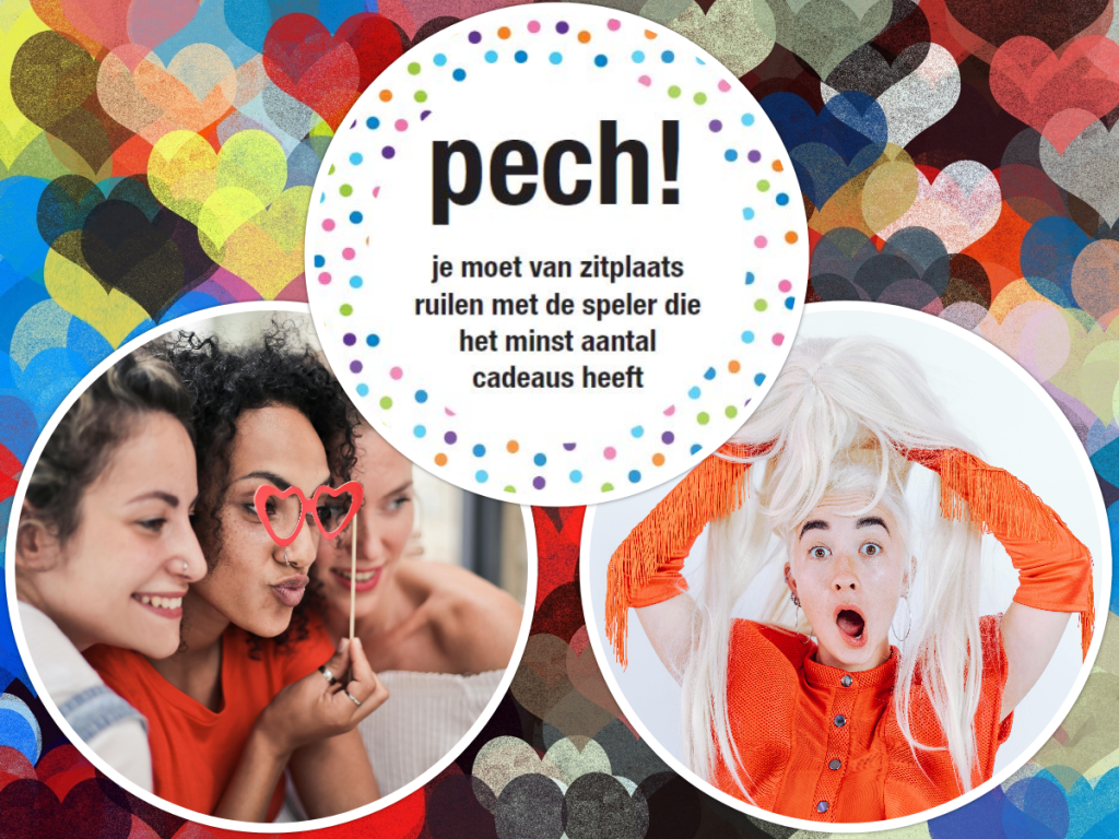 Stop de kaarten in het doorgeefzakje en laat deze samen met de dobbelsteen rond gaan. Bij het gooien van een 1 of 6 mag je een kaart pakken en de opdracht uitvoeren. Pak een nieuwe kaart als de opdracht niet van toepassing is.